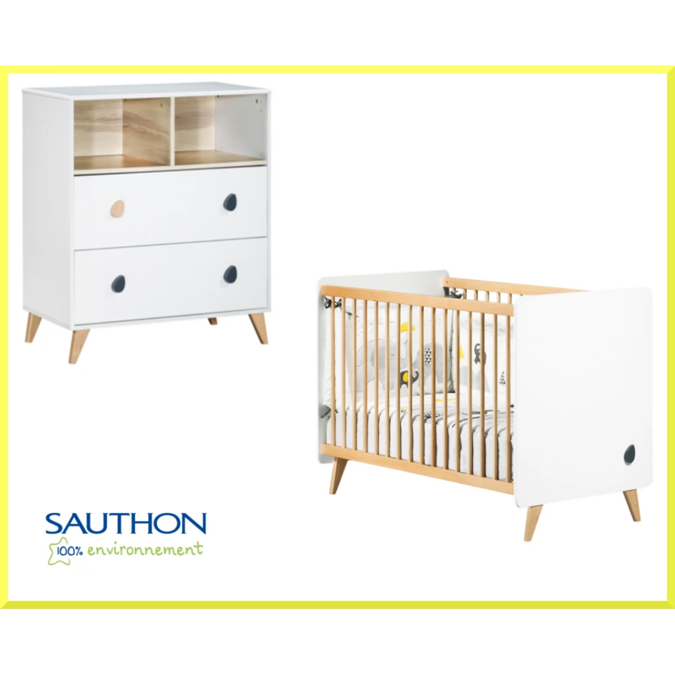 Comme un petit air de Scandinavie souffle chez Sauthon avec cette chambre Duo Oslo qui rĂ©uni les essentiels de la collection: la commode et le lit 60×120. TrĂšs spacieuse grĂące Ă ses 2 tiroirs et 2 niches, la commode accueille toutes les petites affaires de bĂ©bĂ© et permet de les garder Ă portĂ©e de main. PiĂšce maĂźtresse de la chambre de bĂ©bĂ©, le lit Oslo en finition blanc laquĂ© s’intĂšgre parfaitement Ă tous les intĂ©rieurs et ses pieds obliques apportent une jolie touche d’originalitĂ©. La finition laquĂ©e blanc permet Ă la chambre Oslo Sauthon de s’intĂ©grer parfaitement Ă tous les intĂ©rieurs pour crĂ©er Ă bĂ©bĂ© une chambre accueillante et rĂ©confortante. La chambre Oslo par Sauthon est disponible avec poignĂ©es « étoile » ou poignĂ©es « goutte d’eau ». Pour une fille ou pour un garçon, tout se joue dans la dĂ©coration.
