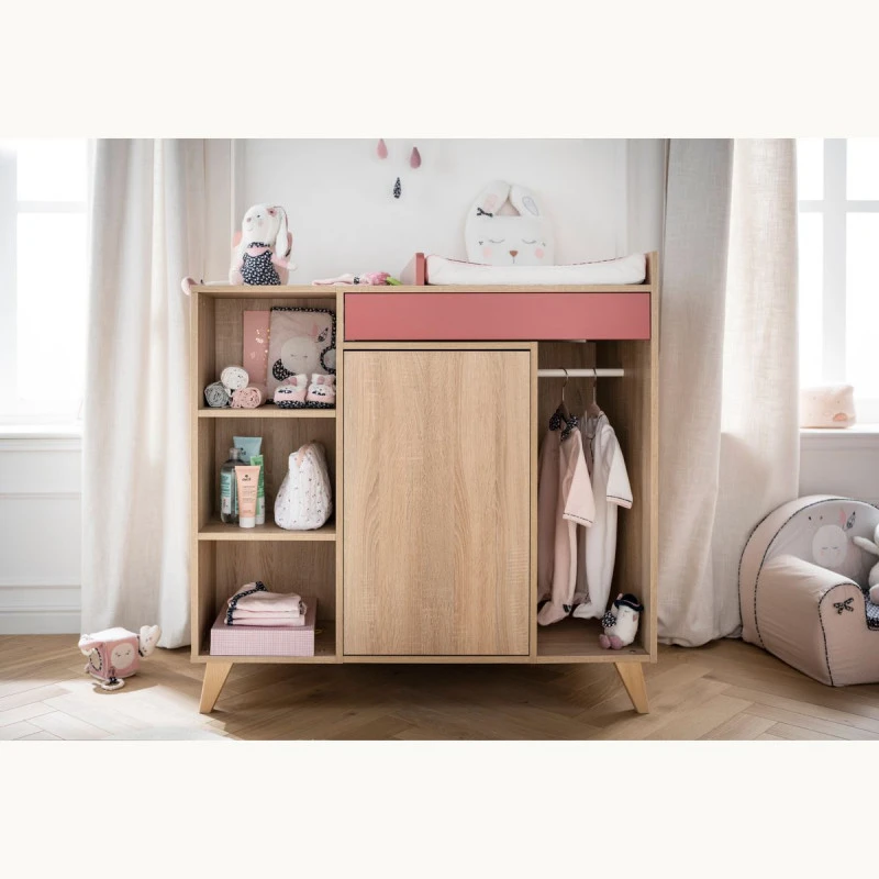 Fonctionnelle, elle offre un grand espace de rangement (tablette, penderie, Ă©tagĂšre, tiroir) pour avoir tout le nĂ©cessaire de bĂ©bĂ© Ă portĂ©e de main.Â