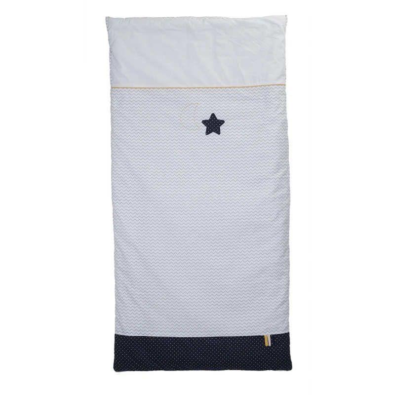 Confortablement installĂ© sous son Ă©dredon 70×140 assorti Ă la collection Hello par Sauthon, bĂ©bĂ© sera enveloppĂ© dans un petit cocon de chaleur, prĂȘt Ă passer une bonne et douce nuit aux pays des rĂȘves. Sauthon a imaginĂ© un Ă©dredon aux couleurs tendres pour emmener votre enfant au pays des rĂȘves. Vous serez sĂ©duits par cet Ă©dredon assorti au thĂšme Ă©toilĂ© qui sâaccordera Ă merveille avec le reste de la gamme Hello, dans les tons de blanc, bleu marine et jaune, on y retrouve sous un motif chevrons une Ă©toile et un jolie petite lune brodĂ©e. N’oubliez pas d’inscrire l’Ă©dredon Hello dans votre liste de naissance, et prĂ©parez l’arrivĂ©e de bĂ©bĂ© en toute sĂ©rĂ©nitĂ©.