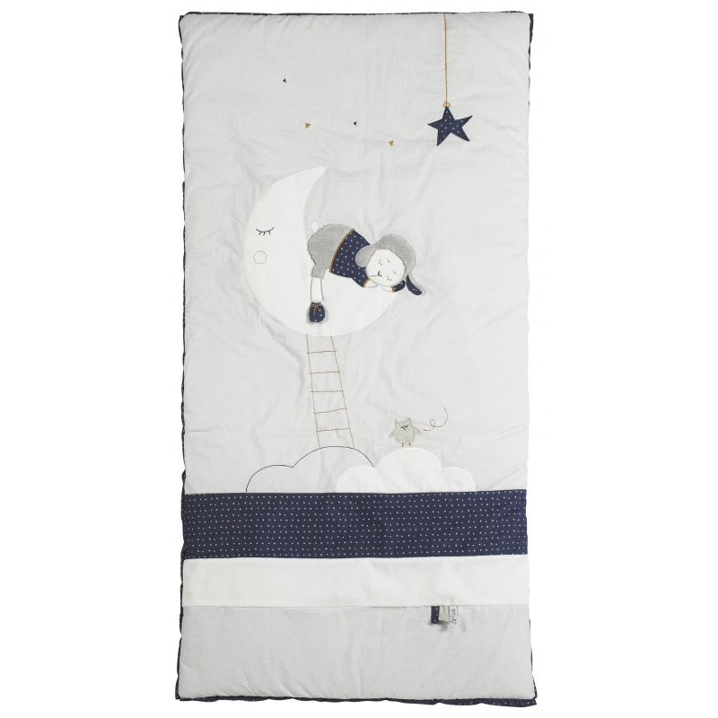 Sauthon aime apporter confort et douceur Ă vos enfants. Câest dans cet esprit que la marque a créé cet Ă©dredon Merlin de 120 x 160 cm : il est doux et moelleux ! Dans les tons gris et bleu marine, il est illustrĂ© de lâadorable Merlin le mouton, tranquillement installĂ© sur un croissant de lune. Il sera parfait pour peaufiner la dĂ©coration de chambre de bĂ©bĂ© et stimuler son imagination : indispensable pour la liste de naissance ! Votre enfant adorera se blottir dans son Ă©dredon Sauthon, que ce soit pour se rĂ©chauffer, se reposer ou carrĂ©ment dormir. Vous pourrez lâemporter partout : en promenade, chez des amis⊠IdĂ©e cadeau idĂ©ale !