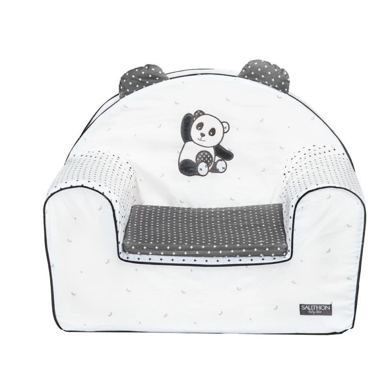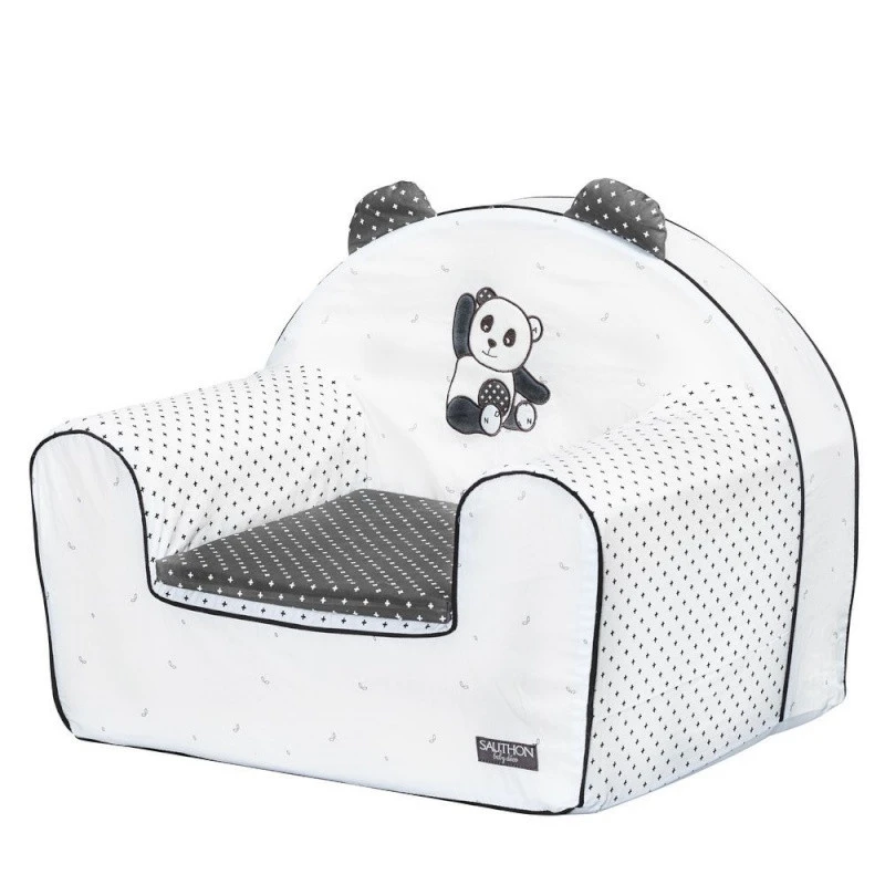 Le fauteuil club assorti à la collection Chao Chao par Sauthon rendra bébé fou de joie : il aura enfin son propre fauteuil et pourra faire comme les grands ! Confortablement installé dans ce fauteuil rembourré, spécialement adapté à sa taille, que ce soit pour lire une histoire, jouer ou se reposer, votre enfant y sera parfaitement installé. Dans les tons de noir et blanc, il est superbement décoré par de jolis motifs graphiques et par Chao le panda qui vous fait coucou ! Il se fondra parfaitement à la chambre de bébé en apportant La touche finale à sa décoration. Petit plus sauthon : pour un entretien facilité, ce fauteuil est entiÚrement déhoussable !