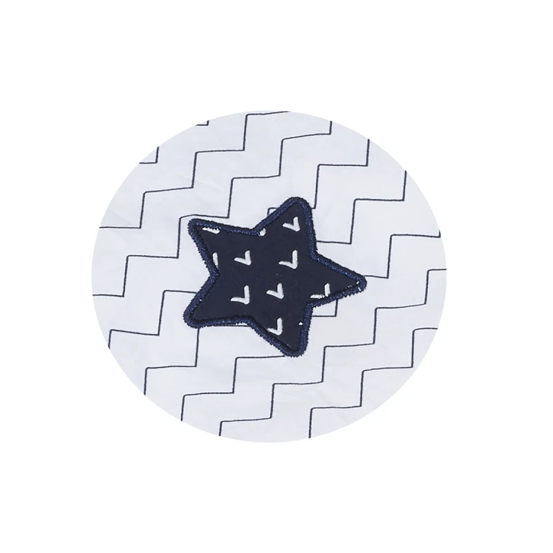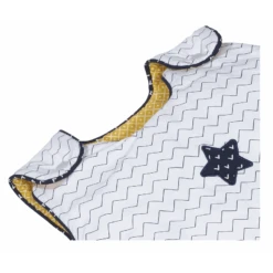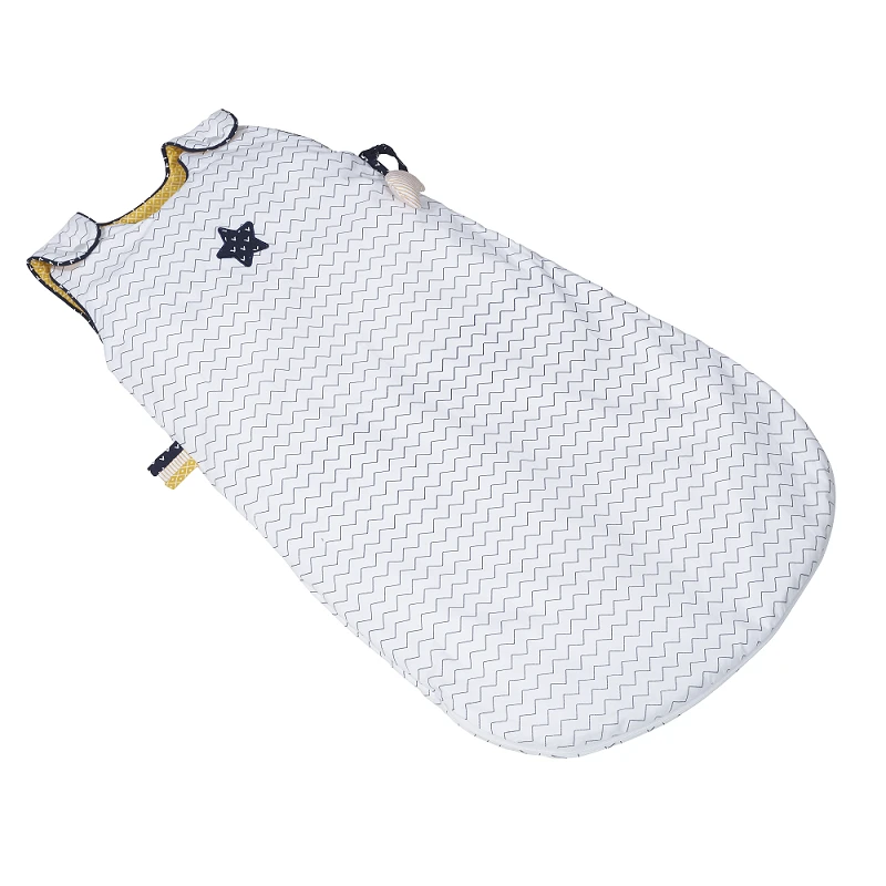 Dans les tons de bleu marine et blanc, direction la lune accompagné de la joyeuse bande de la Happy family ! Avec son motif chevrons et sa belle petite étoile marine, cette gigoteuse légère apportera à bébé la douceur et le confort nécessaire pour les nuits d’été! N’oubliez pas de la glisser sur votre liste de naissance !