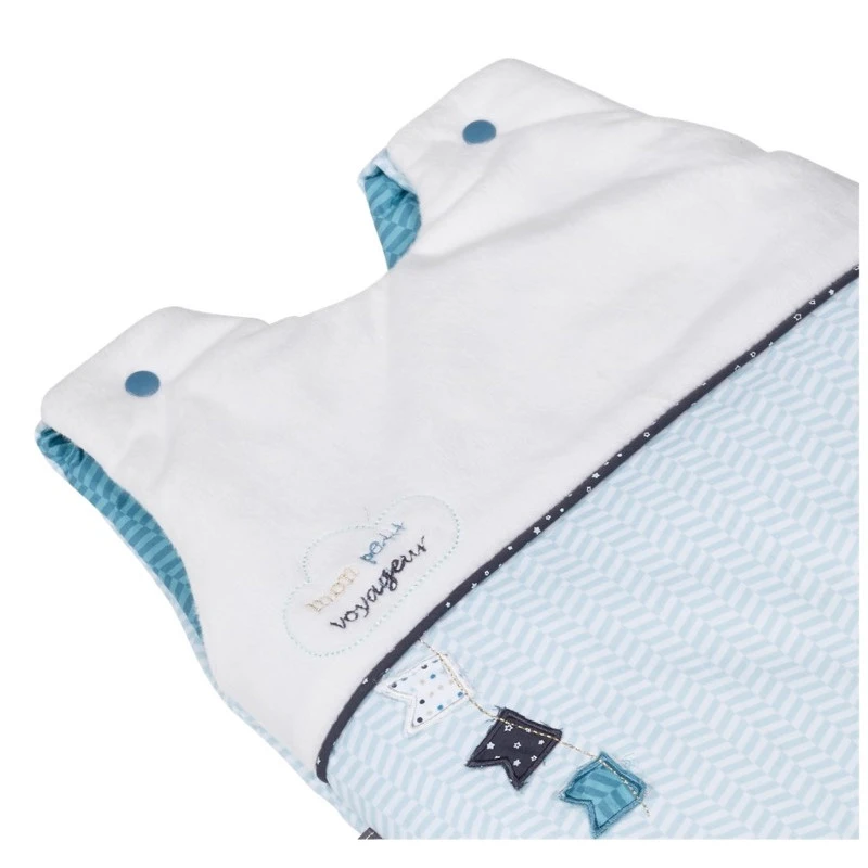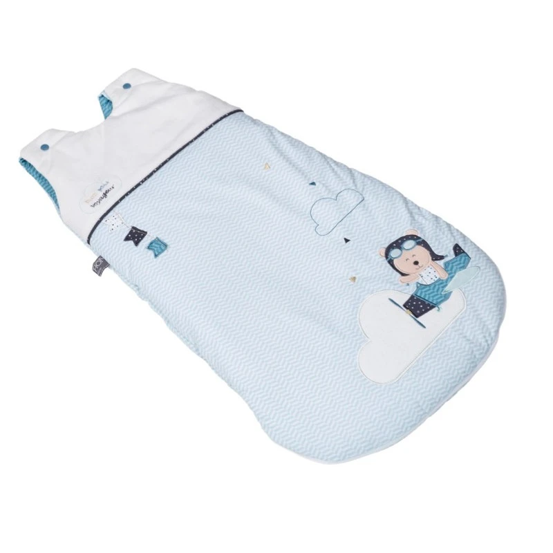Mix parfait entre chaleur, confort et design, la petite gigoteuse assortie Ă la collection Lazare de Sauthon est en velours sur le plastron et en popeline sur la reste de la surface. Parfaite pour les enfants de la naissance Ă 4 mois, la gigoteuse ouatinĂ©e New Lazare s’utilise en hiver pour couvrir bĂ©bĂ© dans son lit, il pourra gigoter Ă loisir sans jamais se dĂ©couvrir. Pour filer tout droit au pays des rĂȘves Sauthon a ornĂ© sa gigoteuse New Lazare du petit ourson pilote qui plane au milieu des nuages. La gigoteuse Naissance New Lazare est trĂšs simple d’utilisation avec ses boutons pression au niveau des Ă©paules et sa fermeture Ă©clair sur le cĂŽtĂ©, vous pourrez la manipuler sans rĂ©veiller bĂ©bĂ©. Pour un hiver bien au chaud, n’oubliez pas de glisser la gigoteuse ouatinĂ©e New Lazare dans votre liste de naissance.
