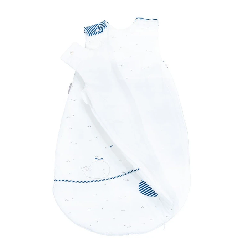 La gigoteuse ouatinĂ©e 0-6 mois Blue baleine par Sauthon est idĂ©ale pour garder votre tout petit bien au chaud pendant son sommeil sans jamais se dĂ©couvrir. Sans manche, elle permet de laisser circuler l’air tout en apportant douceur et chaleur Ă l’enfant. Lâouverture par bouton pression sur les Ă©paules ainsi que la fermeture Ă©clair sur le cĂŽtĂ© de la gigoteuse facilitent lâinstallation de bĂ©bĂ©. Lâutilisation de couverture ou de couette Ă©tant dĂ©conseillĂ©e jusquâĂ lâĂąge de 18 mois, la gigoteuse est la solution idĂ©ale. Blue baleine accompagnĂ©e de ses baleineaux naviguent sur les flots. Une gigoteuse hiver douce et graphique oĂč le bleu minĂ©ral contraste avec le blanc optique des imprimĂ©s. Les animaux Ă l’Ćil malicieux, sĂ©duiront petits et grands. Un beau cadeau tout doux trĂšs pratique pour passer un hiver bien au chaud !Â