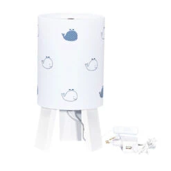 Sauthon a dĂ©veloppĂ© une gamme complĂšte de luminaires pour Ă©clairer la chambre de bĂ©bĂ©. DĂ©couvrez la belle lampe de chevet assorti Ă la collection Blue baleine par Sauthon qui diffuse une lumiĂšre douce et rassurante, idĂ©ale pour une chambre de bĂ©bĂ© ou dâenfant, pour par exemple, lire une histoire avant de sâendormir ou lorsqu’il doit se lever en pleine nuit, il nâaura ainsi pas mal aux yeux en allumant la lumiĂšre principale ! Dans les tons de blanc et bleu, avec 3 pieds en bois, Cet lampe viendra parfaire la dĂ©coration de la chambre. IdĂ©e cadeau utile et originale !