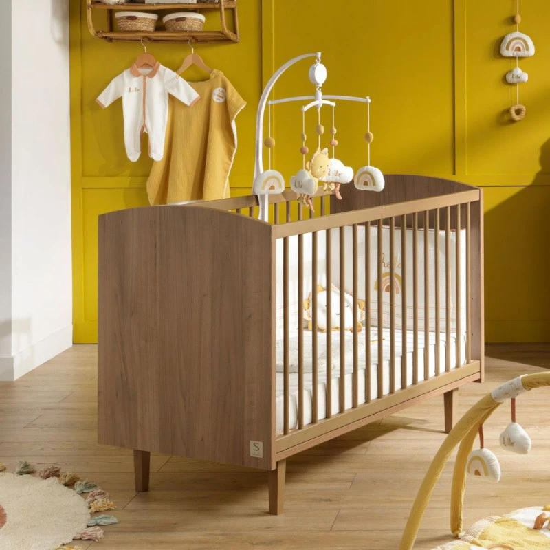 Vous allez fondre pour la chambre Jazzy de Sauthon avec son décor bois chocolat, une couleur gourmande qui réchauffe immédiatement l’atmosphère et s’intègre aisément à toutes les ambiances, des plus claires au plus foncées, des plus sobres aux plus chamarrées. Dans la gamme Jazzy, voici le lit 60 x 120 cm, prêt à accueillir votre bébé de sa naissance à 3 ans environ.