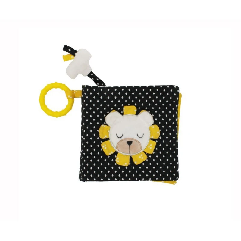 Le livre dâĂ©veil Sauthon Pluche et Pompon mĂ©lange harmonieusement le noir, le blanc et le jaune. Ces couleurs contrastĂ©es sont faciles Ă distinguer par de trĂšs jeunes yeux. Les imprimĂ©s diffĂ©rents, les matiĂšres variĂ©es, comme le velours ou la popeline, ainsi que les plus fins dĂ©tails, de dĂ©licats rubans par exemple, lâencouragent Ă manipuler et Ă amĂ©liorer sa dextĂ©ritĂ©, jusquâĂ des gestes trĂšs prĂ©cis.