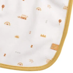Pour ce lot de 2 bavoirs, Sauthon a choisi la douceur et le raffinement ! Ils sont rĂ©alisĂ©s en jersey de coton blanc, doublĂ© dâune Ă©ponge absorbante, et ils sont certifiĂ©s Oeko-TexÂź, afin de garantir lâabsence de substances nocives ou irritantes pour la peau. Ils sont bordĂ©s dâun magnifique biais jaune pour lâun et orangĂ© pour lâautre, et dĂ©corĂ©s de motifs originaux : arc-en-ciel, ballon, couronne…
