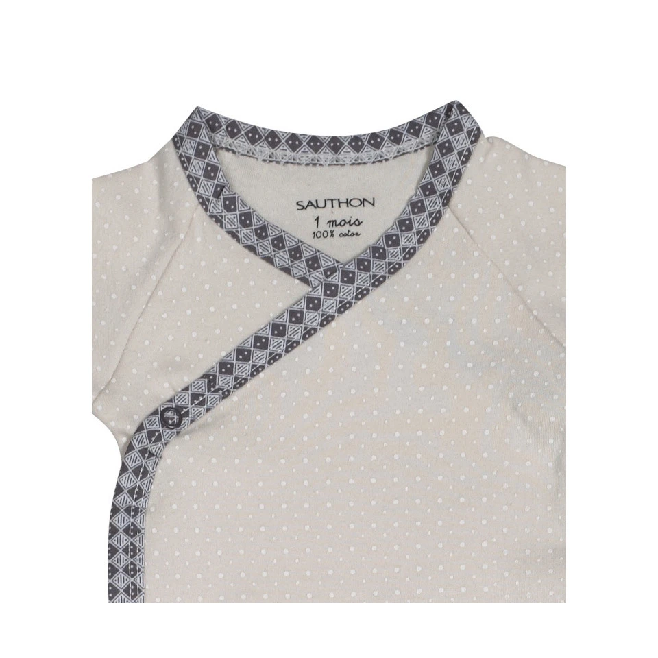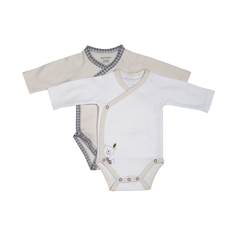 Le lot de 2 bodies assortis Ă la collection Timouki par Sauthon, fabriquĂ©s Ă 100% en jersey de coton, sont doux et confortable. Leur forme croisĂ©e ainsi que leurs boutons pression permettent de changer bĂ©bĂ© trĂšs facilement et sans gĂȘner bĂ©bĂ©.