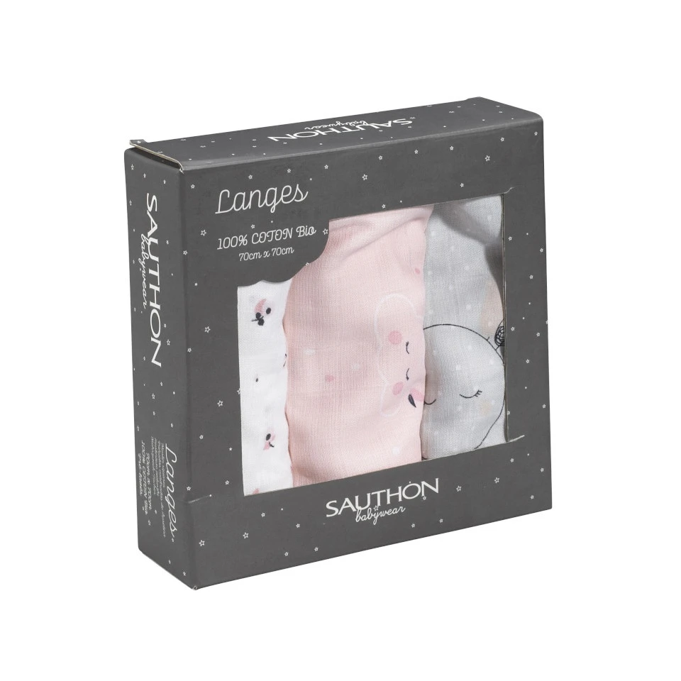 Ces superbes petits langes en coton bio assortis Ă la collection Miss Chipie par Sauthon sont vraiment trĂšs doux et peuvent facilement sâemporter partout. ils sont multifonction, que ce soit comme couverture, doudou, protection pour le change ou mĂȘme comme serviette de plage, ils sont indispensables ! Et parce que les langes sont souvent au plus prĂšs de la peau de bĂ©bĂ©, Sauthon les a faits en coton biologique, gĂ©nial !