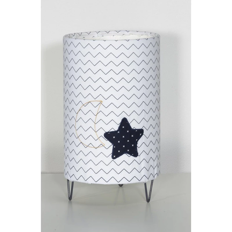 Dans les tons de blanc et bleu marine, une belle Ă©toile bleue est rodĂ©e sur lâabat-jour sur 3 pieds en mĂ©tal. Un Ă©lĂ©ment qui viendra parfaire la dĂ©coration de la chambre. IdĂ©e cadeau utile et originale !