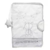 Dans les tons de gris et de blanc, ce matelas à langer représente le petit ours Céleste avec son petit doudou qui essaye d’attraper la lune entourée de petites étoiles…