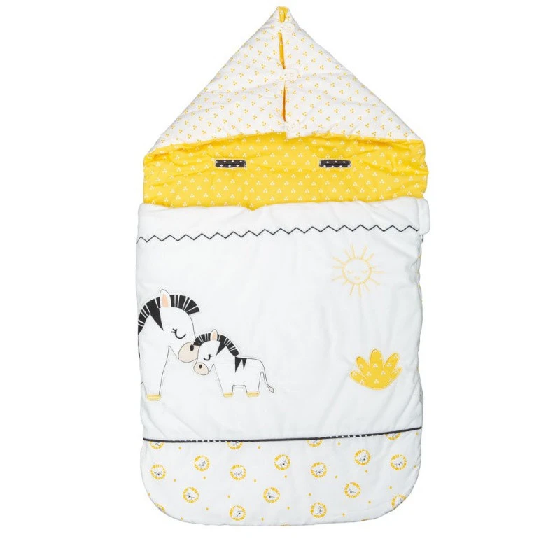 Le nid dâange Sauthon Pluche et Pompon est aussi joli que pratique ! Sur fond blanc, il juxtapose un imprimĂ© de fins motifs jaunes sur la capuche, un autre constellĂ© de jolies tĂȘtes de lions sur le bas, et deux adorables zĂšbres au milieu. RĂ©alisĂ© avec des tissus certifiĂ©s Oeko-tex, il garantit le plus grand respect pour la santĂ© et la peau dĂ©licate de votre bout de chou.