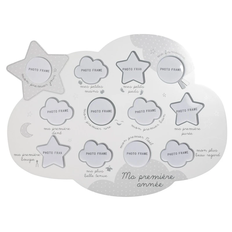 Un joli pêle-mêle assorti à la collection Céleste par Sauthon pour admirer tous les souvenirs des premières fois de bébé !