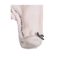 Dans les tons de rose avec un liserĂ© bleu marine, câest un pyjama Ă©lĂ©gant et raffinĂ© avec son joli col Claudine fleuri, son petit nuage endormi et ses petits nĆuds marines sur les pieds.