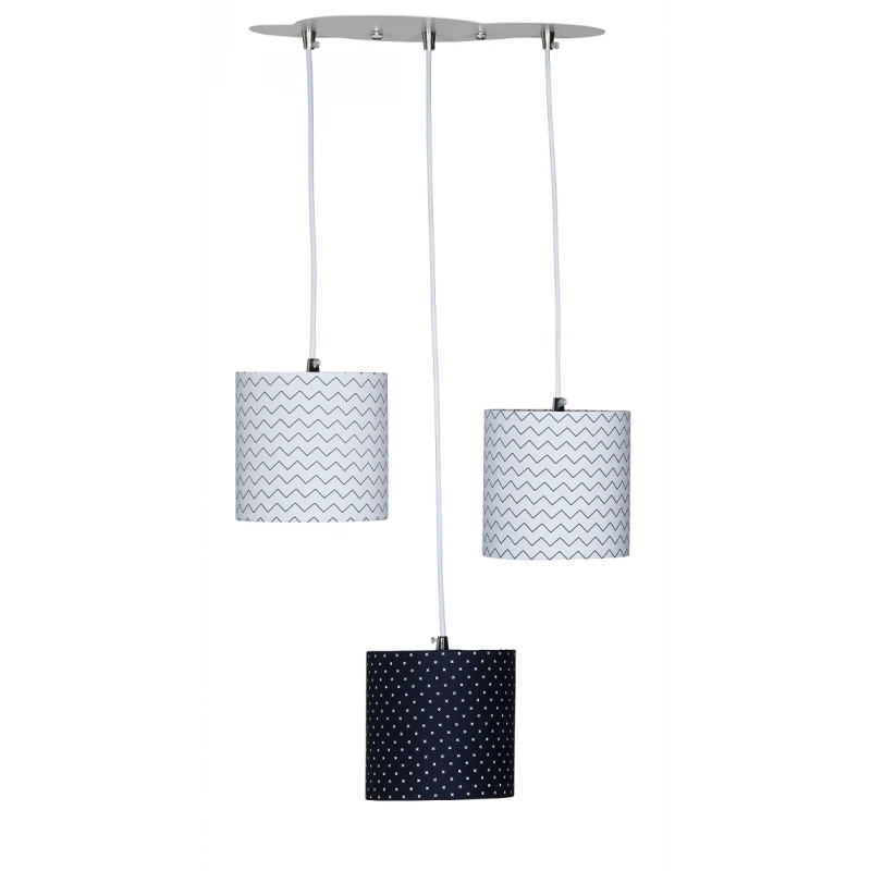Sauthon a dĂ©veloppĂ© une gamme complĂšte de luminaires pour Ă©clairer la chambre de bĂ©bé ! Dans les tons de bleu marine et blanc avec des motifs graphiques, les abat-jours de la suspension trio Hello sont rĂ©glables en hauteur pour laisser libre cours Ă votre crĂ©ativitĂ©. FabriquĂ©s en coton, ces abat-jours vous permettront d’adoucir la lumiĂšre de la chambre afin de crĂ©er une atmosphĂšre cosy et chaleureuse dans la chambre de bĂ©bĂ© et Ă©viter de le surprendre avec une luminositĂ© trop forte. De plus, le plafonnier en forme de nuage habillera joliment le plafond de maniĂšre ludique et enfantine !