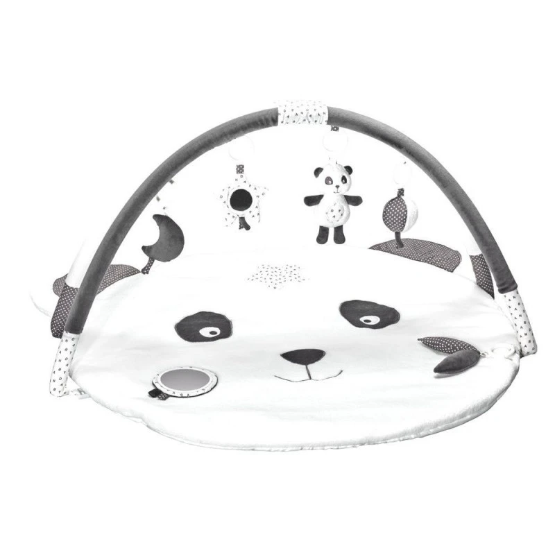 Le tapis d’Éveil assorti au thème Chao Chao par Sauthon est parfaitement adapté pour stimuler les sens de l’enfant grâce aux différentes couleurs et jouets qui le constituent. Tous les jeux d’éveil peuvent être détachés des arches et utilisés comme peluches lorsque bébé aura grandi. Installé confortablement, sur son tapis molletonné, bébé pourra jouer et s’éveiller avec de multiples activités : des miroirs, des hochets, des peluches, etc… Dans les tons de blanc et noir, on y retrouve le beau petit panda de la collection entouré d’étoiles et d’une jolie lune ! Vous pourrez par la suite utiliser le tapis d’éveil sans les arches comme tapis pour amortir les chutes du quatre patte ou des premiers pas… Super idée cadeau !