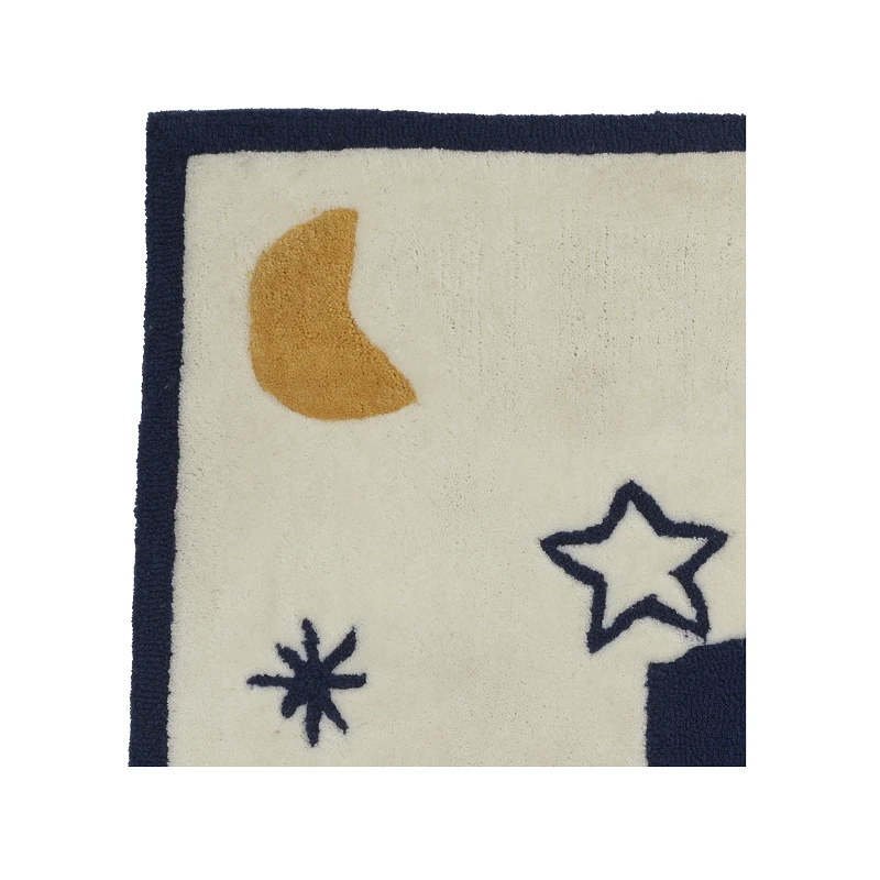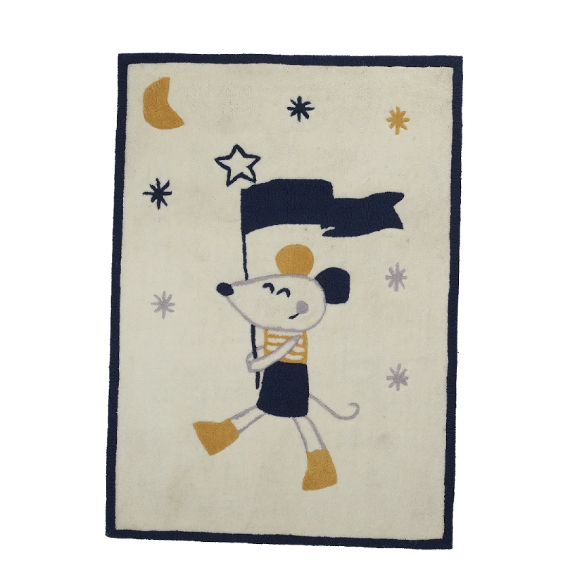 Ce beau tapis de chambre rectangulaire tuftĂ© main assorti Ă la collection Hello par Sauthon est idĂ©al pour ajouter une touche de gaitĂ© et de fantaisie Ă la chambre de bĂ©bĂ©, que ce soit pour sâamuser dessus ou tout simplement apporter une touche de dĂ©co Ă la chambre. Dans les tons de bleu marine, blanc et jaune, on y retrouve la petite souris de la collection qui transporte un joli drapeau, entourĂ© de petites Ă©toiles et d’une jolie lune jaune ! Un tapis de chambre aux couleurs tendres et plein de fantaisie qui s’intĂšgre parfaitement Ă la dĂ©coration de la chambre et au reste de la collection Hello. Un magnifique cadeau qui fera des heureux !