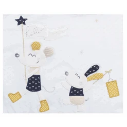 DĂ©couvrez la superbe collection Hello par Sauthon. Dans les tons de bleu marine, jaune et blanc, son adorable petite souris accompagnera bĂ©bĂ© dans toutes ses aventures et ses plus jolis rĂȘves. Avec un pied dans la lune et lâautre dans les Ă©toiles, la collection Hello a tout pour plaire et plonge la chambre de votre tout petit dans son univers plein de rĂȘves Ă©toilĂ©s. Vous y retrouverez tous les objets nĂ©cessaires pour crĂ©er un univers cosy et confortable : Tour de lit, Ă©dredons, housse de couette, gigoteuses, pyjamas, matelas Ă langer, mobile, tapis dâĂ©veil, sortie de bain, doudous et peluches⊠et plein dâautres articles !