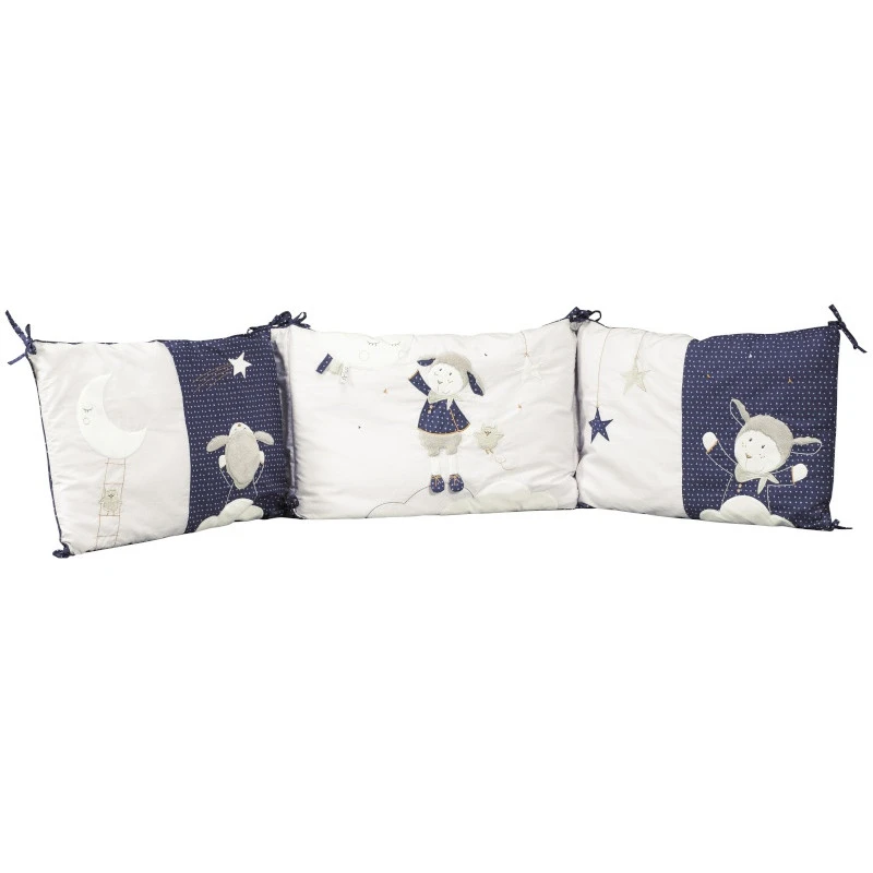 Sauthon le sait bien, le tour de lit est un Ă©lĂ©ment capital du lit de bĂ©bĂ© et donc un incontournable des listes de naissance. Ce modĂšle Merlin moelleux et douillet protĂ©gera la tĂȘte de bĂ©bĂ© des barreaux de son lit. Ses couleurs et ses illustrations mettront bĂ©bĂ© dans les meilleures conditions possibles pour passer de merveilleuses nuits pleines de beaux rĂȘves. Merlin le mouton rĂȘveur veillera sur le sommeil de votre enfant ! Ce tour de lit Sauthon est Ă©galement pratique puisquâil est dĂ©houssable et quâil possĂšde un systĂšme dâattache par liens de serrage en tissus. Vous pourrez donc le nettoyer, lâinstaller et dĂ©sinstaller trĂšs simplement. Pas dâhĂ©sitation possible !