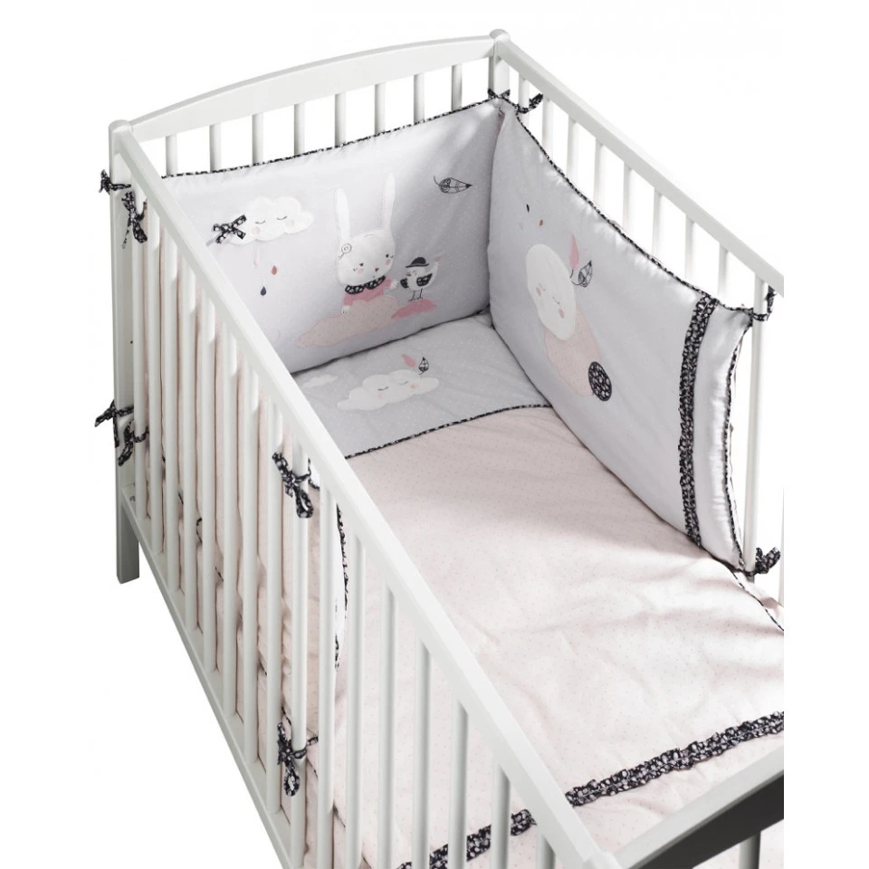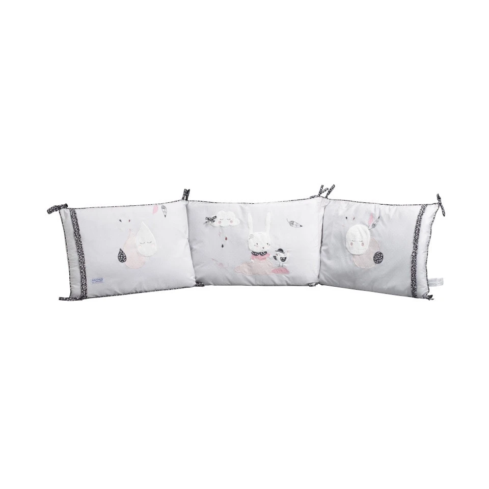 Bébé sera ravi de dormir en compagnie des petits lapins, gouttes et plumes présents sur son tour de lit !