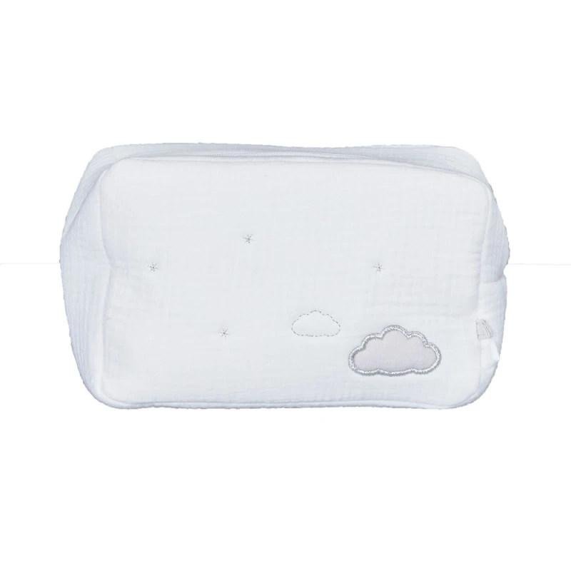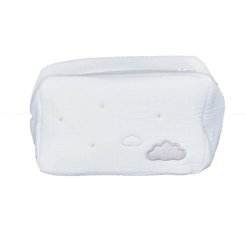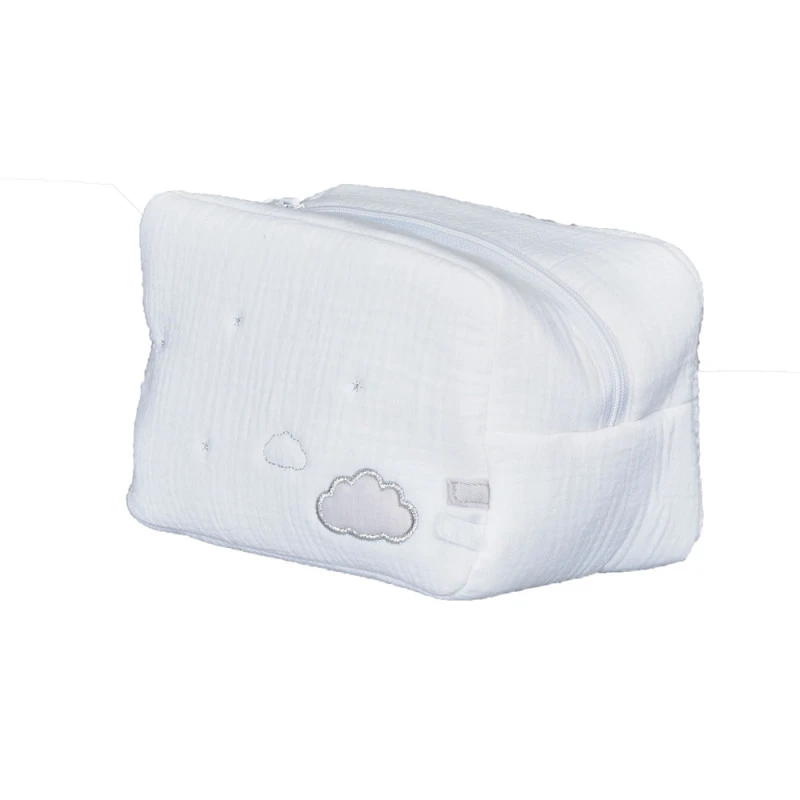 Sauthon vous prĂ©sente cette mignonne petite trousse de toilette inspirĂ©e du thĂšme Lily grey. Vous pourrez y ranger le petit nĂ©cessaire de change de bĂ©bĂ© lorsque vous ne souhaitez pas sortir trop chargĂ© ou lâutiliser pour ranger les produits de toilettes lorsque vous partez en voyage pour les avoir toujours Ă portĂ©e de main. IdĂ©e originale et pratique pour la liste de naissance. Dans les tons de gris et dĂ©corĂ©e dâun joli petit nuage, cette adorable trousse de toilette Sauthon en mousseline de coton gaufrĂ©e pourra vous ĂȘtre utile dans bien des circonstances ! Son tissu intĂ©rieur est dĂ©perlant et se nettoie facilement d’un coup d’Ă©ponge.Â