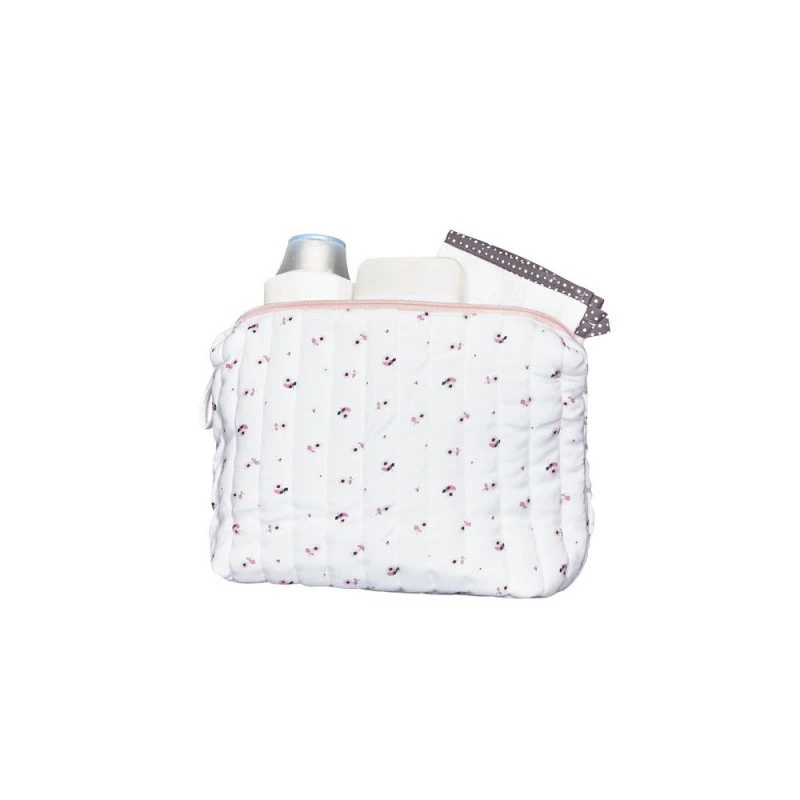 Sauthon vous prĂ©sente cette mignonne petite trousse de toilette assortie au thĂšme Miss Fleur de Lune. Vous pourrez y ranger le petit nĂ©cessaire de change de bĂ©bĂ© lorsque vous ne souhaitez pas sortir trop chargĂ© ou lâutiliser pour ranger les produits de toilettes lorsque vous partez en voyage pour les avoir toujours Ă portĂ©e de main. IdĂ©e originale et pratique pour la liste de naissance. Elle est facilement nettoyable grĂące Ă son tissu intĂ©rieur dĂ©perlant, cette adorable trousse de toilette dĂ©corĂ©e de petites fleurs roses pourra vous ĂȘtre utile dans bien des circonstances !